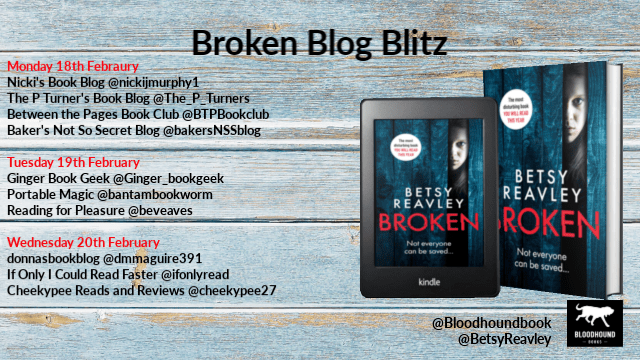 Today I am pleased to be part of the blog tour for Broken. My review is written with thanks to Emma and Heather from Bloodhound Books for inviting me on the tour and for my copy of the book.