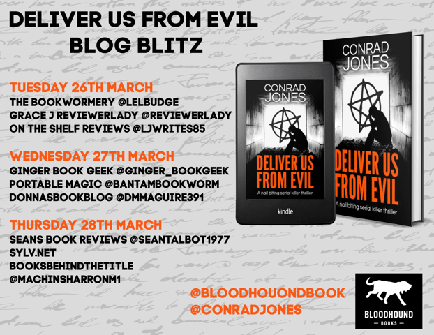 I’m pleased to be one of the bloggers on the blog tour for Deliver Us From Evil. My review is written with thanks to Heather at Bloodhound Books for inviting me on the tour and providing my copy of the book.