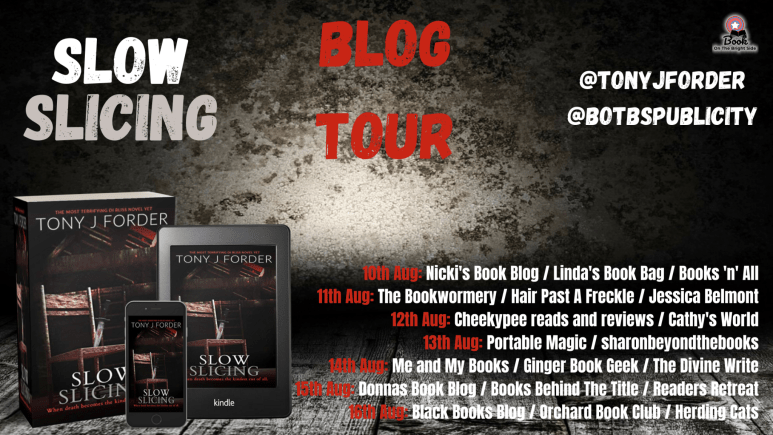 Today I’m pleased to be taking part in the blog tour for Slow Slicing. My review is written with thanks to Sarah Hardy at Book On The Bright Side for inviting me on the tour and for my copy of the book.