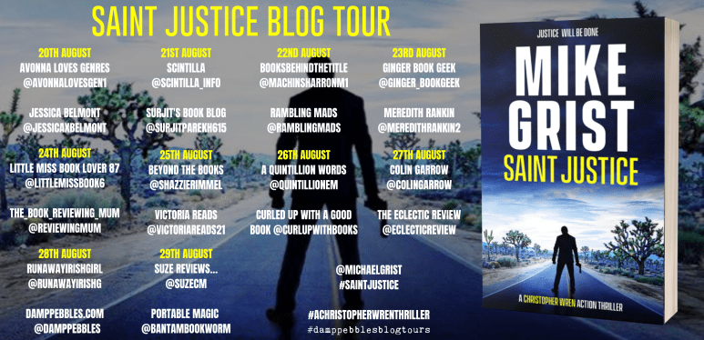 Today I’m pleased to be taking part in the blog tour for Saint Justice by welcoming author Mike Grist to Portable Magic. My post is written with thanks to Emma Welton of damppebbles Blog Tours for inviting me on the tour and, of course, to Mike Grist for answering my questions.