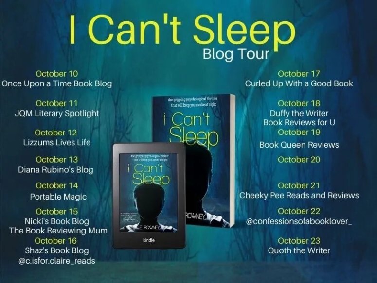 Today I’m pleased to be taking part in the blog tour for I Can’t Sleep. My post is written with thanks to Jayne Rowney for inviting me on the tour and for answering my questions!