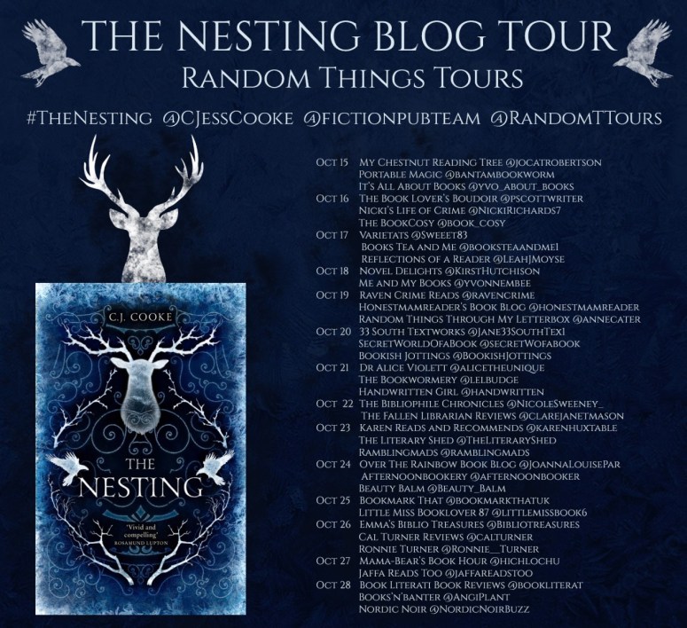 Today I’m delighted to be taking part in the blog tour for The Nesting. This guest post is shared with thanks to Anne Cater for inviting me on the tour and to CJ Cooke for writing her guest post!