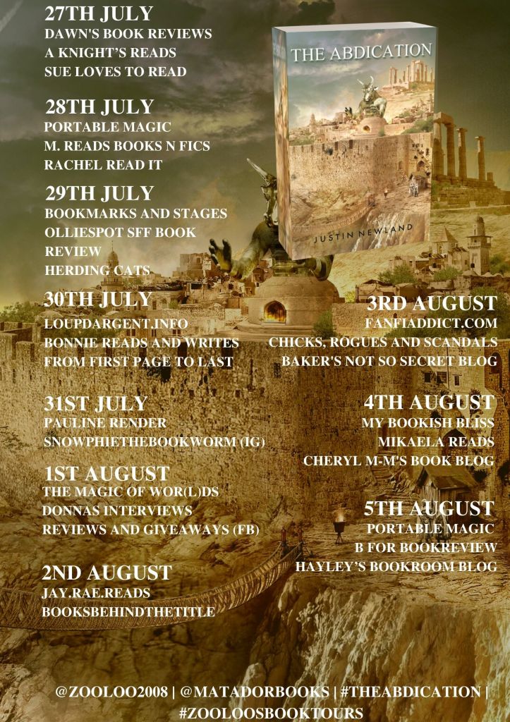 Today I’m pleased to be taking part in the blog tour for The Abdication. My post is shared with thanks to Zoe O’Farrell for inviting me on the tour and to Justin Newland for answering my questions!