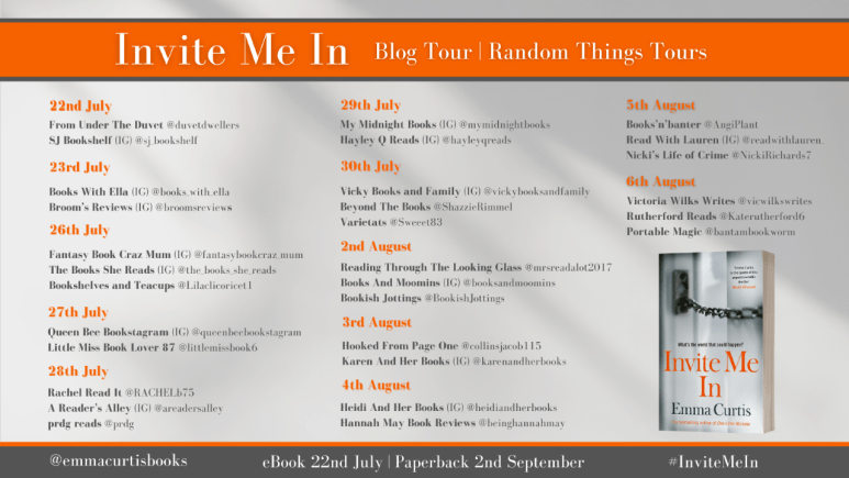 Today iI’m pleased to be joining the blog tour for Invite Me In. My review is written with thanks to Anne Cater for inviting me on the tour and to the publisher for my copy of the book via Netgalley.