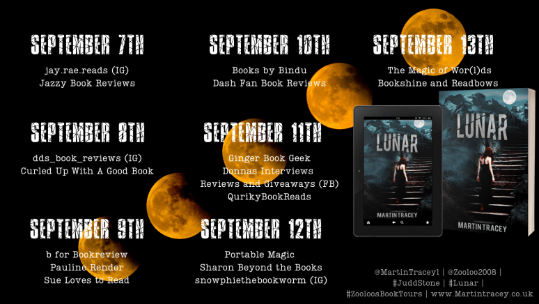 Throughout Lunar, Tracey explores the idea of past life regression. This is not something I strongly believe in but I found the concept fascinating and really appreciated the level of research the author has undertaken. He uses it well to create an engaging plot that made me think all the way through.