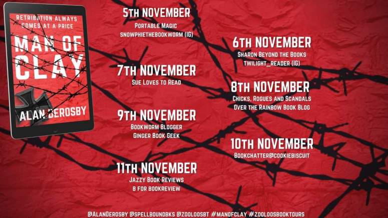 Today I’m taking part in the blog tour for Man Of Clay. My post is shared with thanks to Zoe O’Farrell and the team at Spellbound Books for inviting me on the tour and to Alan Derosby for answering my questions!
