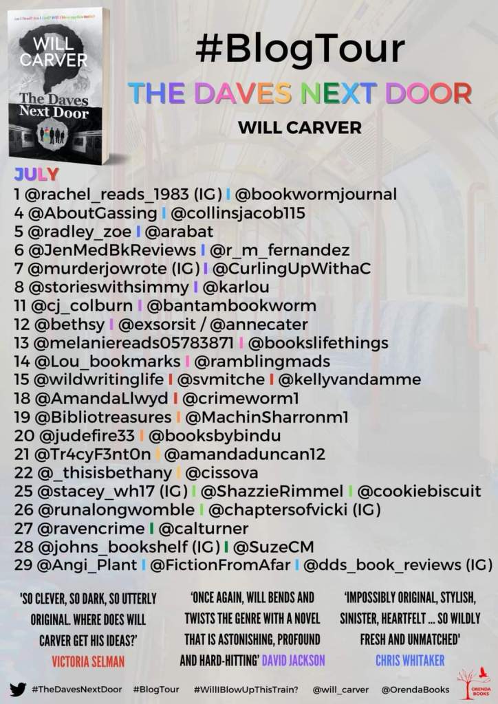 Today I’m taking part in the blog tour for The Daves Next Door. My review is written with thanks to Anne Cater for inviting me on the blog tour and to Orenda Books for my copy of the book.