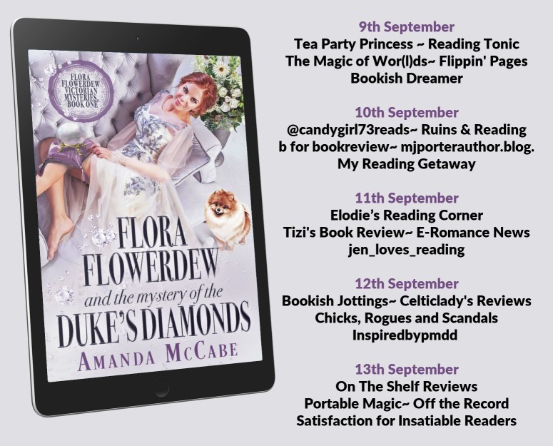 Today I’m joining the blog tour for Flora Flowerdew And The Mystery Of The Duke’s Diamonds. I’m sharing a Q&A with the author with thanks to Rachel Gilbey at Rachel’s Random Resources for inviting me on the blog tour and to Amanda McCabe for answering my questions!