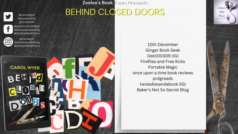 Behind Closed Doors is Carol Wyer’s first standalone thriller after novels in three different amazing series, so I was interested to see how she would handle this new project with completely new characters. The characters are absolutely brilliant and the author has observed them so well. Stacey could easily front a series of her own and I loved her tenacity and intelligence, despite having problems of her own. Jack was a character who really got under my skin. Having been in a relationship with someone like Jack, I know just how authentic his narcissistic behaviour was and he really got under my skin.