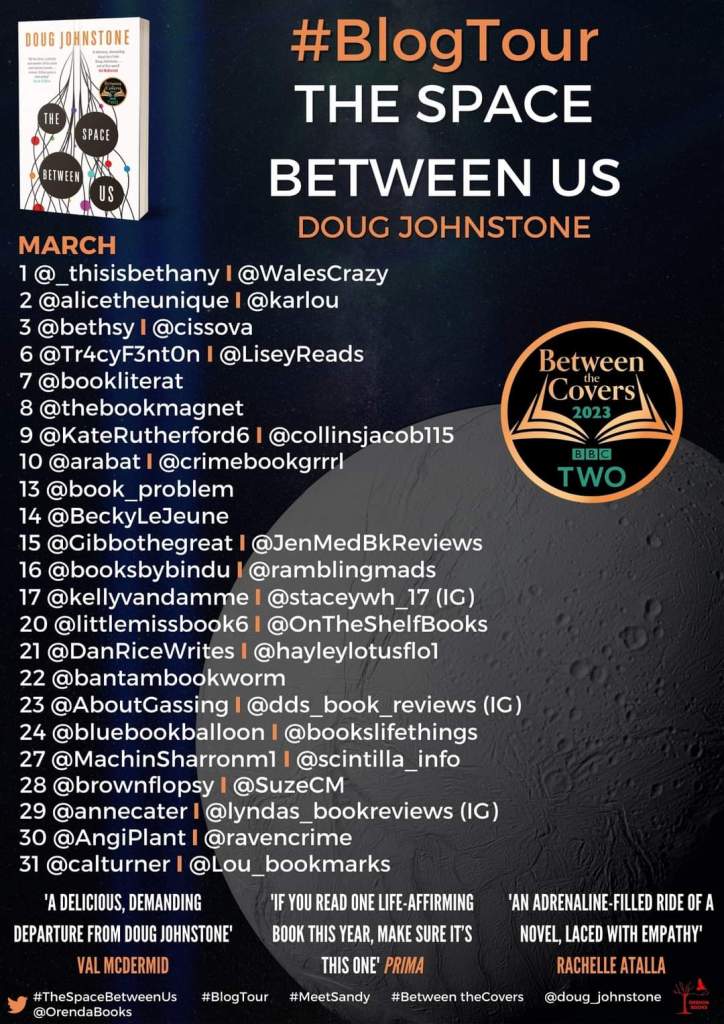 If you’ve read my blog before, you’ll know that sci-fi isn’t my favourite genre, but the author of The Space Between Us is Doug Johnstone so obviously I had to step into the unfamiliar world of the extra terrestrial and see what this novel is all about for myself. I shouldn’t have worried about it being too far out of my comfort zone. Doug Johnstone is an absolutely phenomenal writer, whose storytelling and ability to create relatable characters, often in unusual situations is second to none.