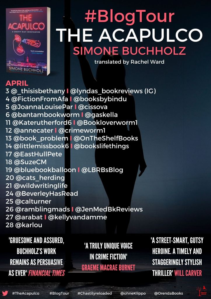 Today I’m joining the blog tour for The Acapulco. I’m sharing an extract from the book with thanks to Anne Cater for inviting me on the tour and to Orenda Books for providing the extract.