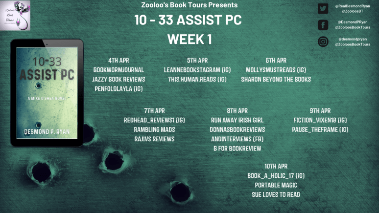 Today I’m joining the blog tour for 10-33 Assist PC. I’m sharing my Q&A with the author with thanks to Zoe O’Farrell for inviting me on the tour and to Desmond P Ryan for answering my questions!
