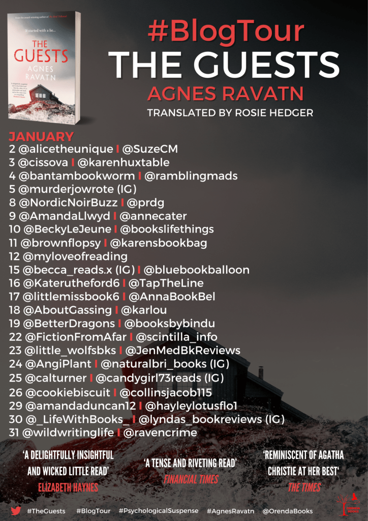 Today I’m joining the blog tour for The Guests. My review is written with thanks to Anne Cater for inviting me on the tour and to Orenda Books for my copy of the book.