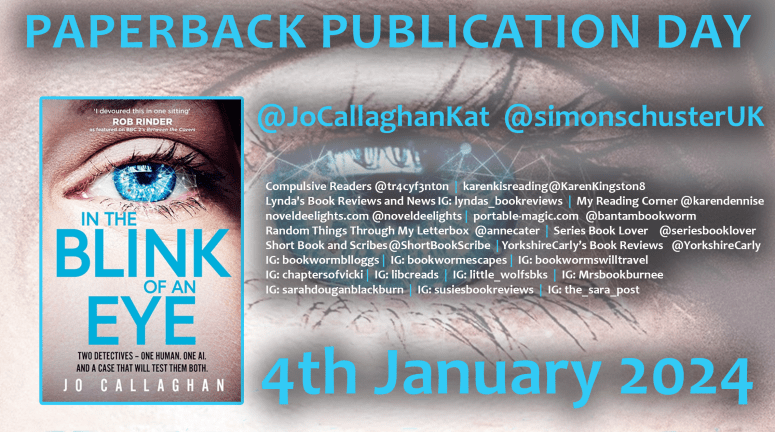 Jo Callaghan is an extremely clever writer and at times, I had to stop and remind myself that In The Blink Of An Eye is a debut novel. There are so many layers to it and it is so much more than a police procedural novel. The final reveal was eye opening and there was so much tension as Kat and her team raced to find the perpetrator.