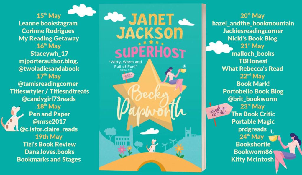 Today I’m taking part in the blog tour for Janet Jackson Superhost. I’m sharing my Q&A with the author with thanks to Rachel Gilbey at Rachel’s Random Resources for inviting me on the tour and to Becky Papworth for answering my questions!
