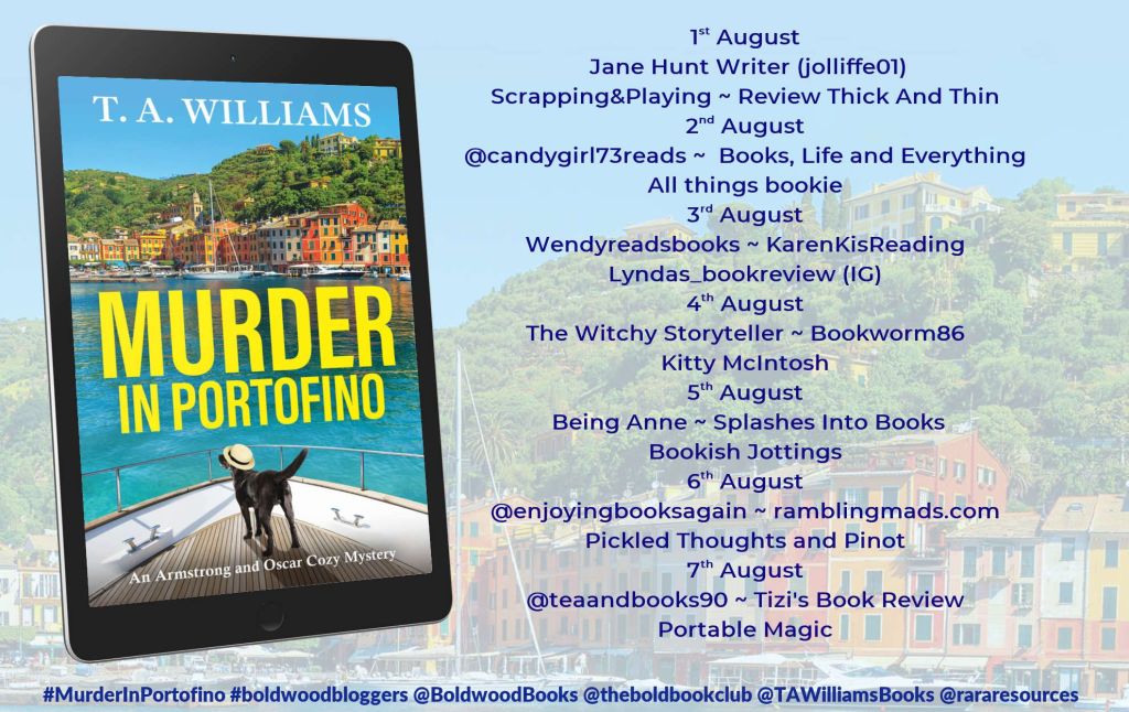 Today it’s my turn on the blog tour for Murder In Portofino. My review is written with thanks to Rachel Gilbey at Rachel’s Random Resources for inviting me on the tour and to the publisher for my copy of the book.