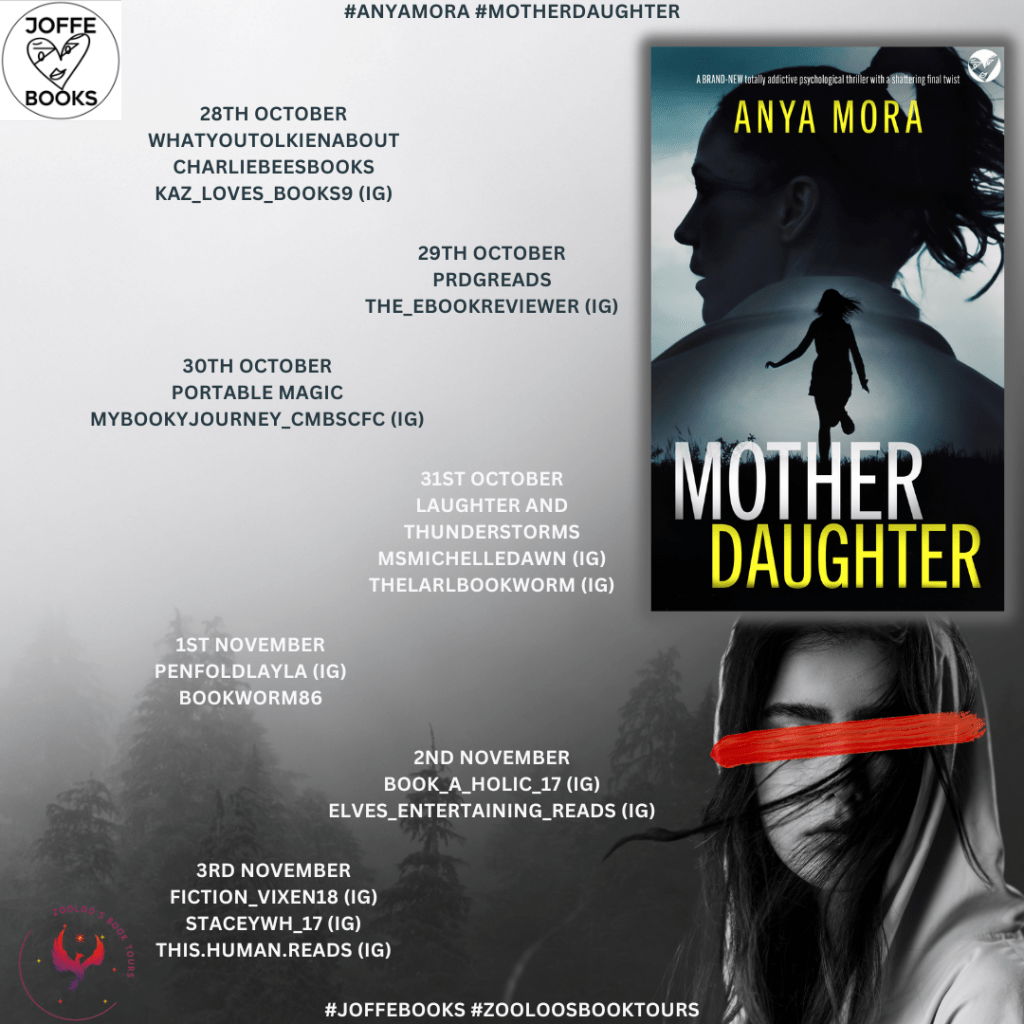 I read and enjoyed a book by Anya Mora for the first time earlier this year so I was looking forward to seeing what she would do next. Mother Daughter is just as gripping and intriguing and I love the way the author takes a popular theme – young girls who are missing – and writes about it in a unique way.