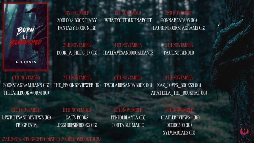 Today I’m joining the blog tour for Born Of Bloodshed. My review is written with thanks to Zoe O’Farrell for inviting me on the tour and to the author for my copy of the book.