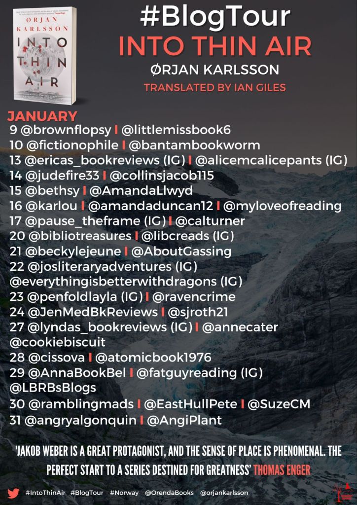 Today I’m joining the blog tour for Into Thin Air. My review is written with thanks to Anne Cater for inviting me on the tour and to Orenda Books for my copy of the book.