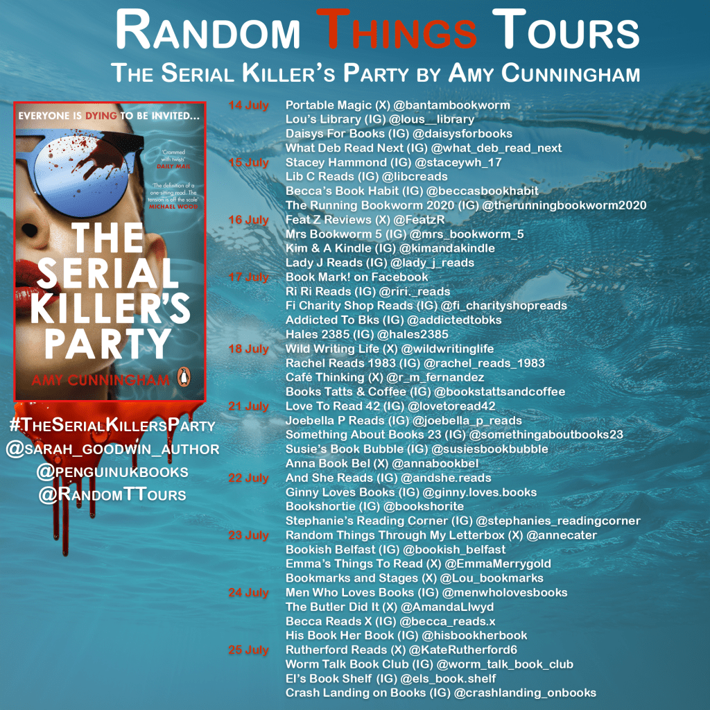 Today I’m joining the blog tour for The Serial Killer’s Party. My review is written with thanks to Anne Cater for inviting me on the tour and to the publisher for my copy of the book.