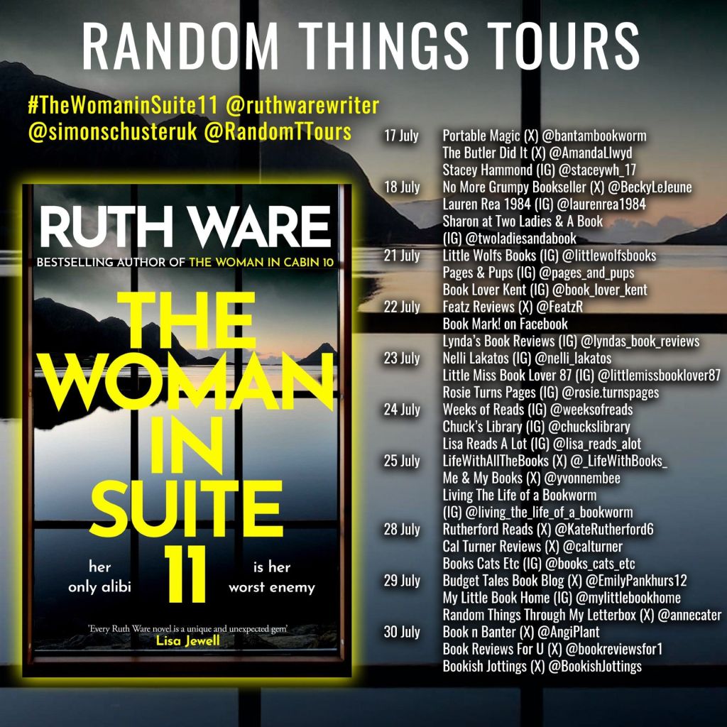 Today it’s my turn on the blog tour for The Woman In Suite 11. My review is written with thanks to Anne Cater for inviting me on the tour and to the publisher for my copy of the book.