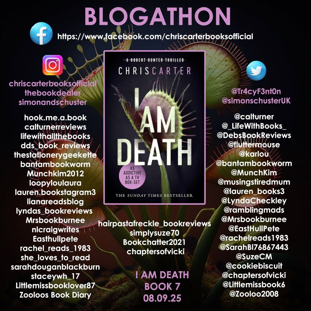 I absolutely love this series and I’m delighted to be back with the blogathon. I Am Death is another brilliant addition to the series which has everything I’ve come to expect from Chris Carter. After working separately in the previous novel, Robert Hunter and Carlos Garcia are working together again and I loved being able to see their chemistry straight away.