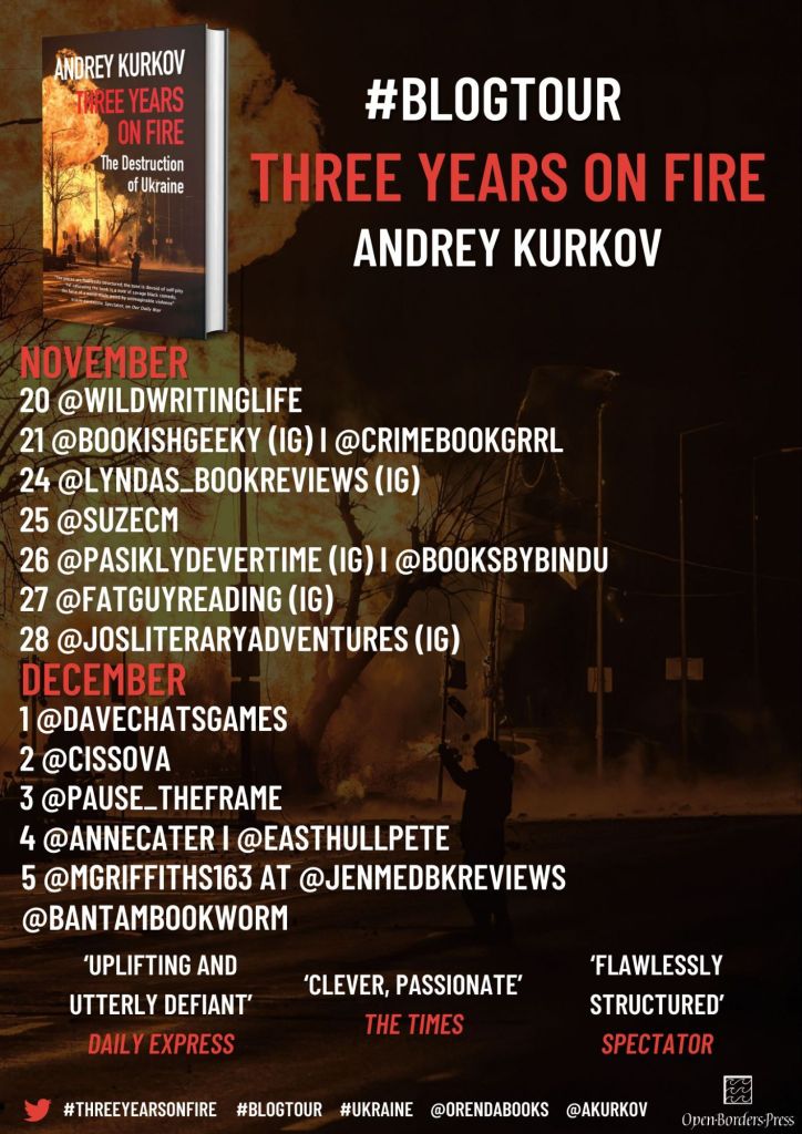 From the home front to the trenches, Kurkov captures the rhythms of survival – the quiet rituals, unlikely joys, unexpected humour and appalling costs – in an intimate and deeply moving record of national endurance. Three Years on Fire is a luminous act of remembrance, rich with unforgettable detail and human spirit, from a writer whose voice stands witness to everything Ukraine has lost – and everything it refuses to give up.